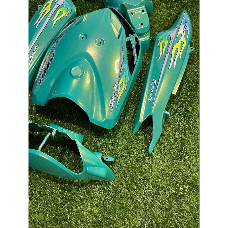 Cover full body halus Yamaha mio smile warna aliens green plus striping transparan