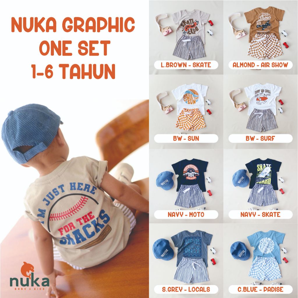 Nuka Graphic One Set Setelan Bayi Dan Anak Laki-Laki 1-6 Tahun Sablon Premium 100 PERSEN Katun Combed