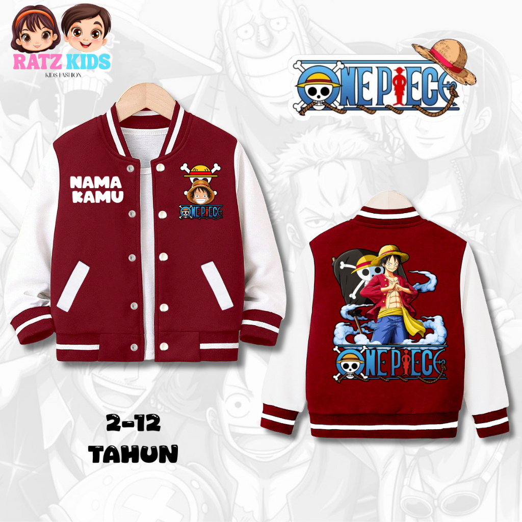 Ratz Kids - Jaket Baseball Varsity Anak Laki-Laki Perempuan One Piece Free Nama Usia 2-12 Tahun