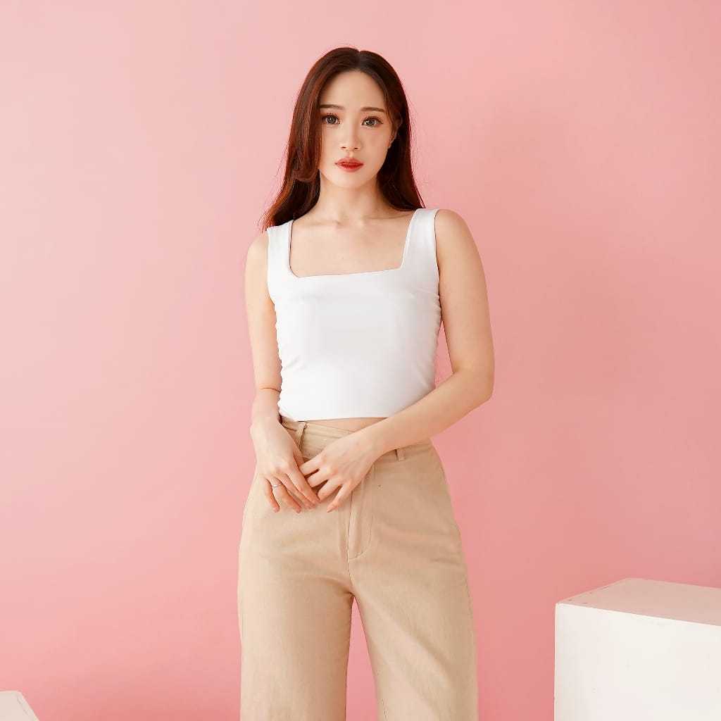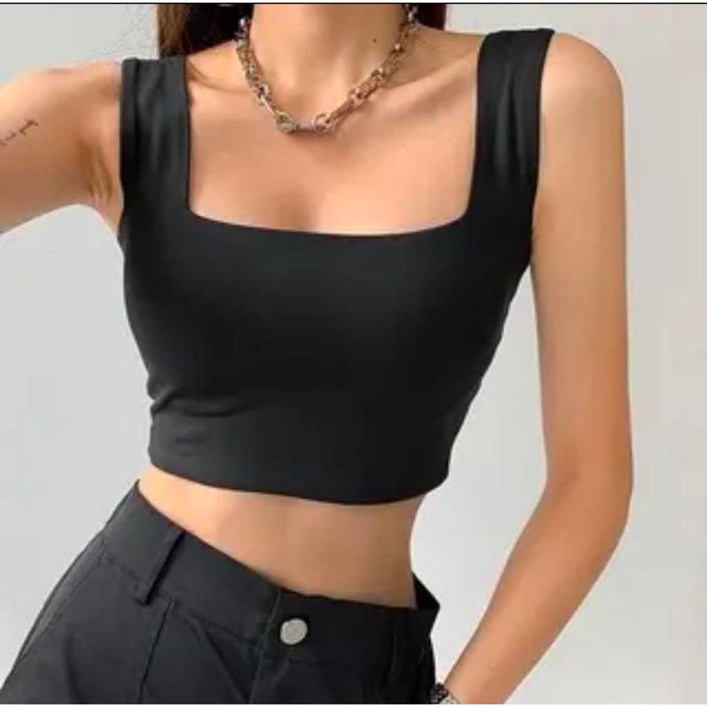 Tanktop Tali Besar Crop Square Double Layer Basic Korean / Atasan Wanita Crop Tanktop Premium Murah Gratis Ongkir