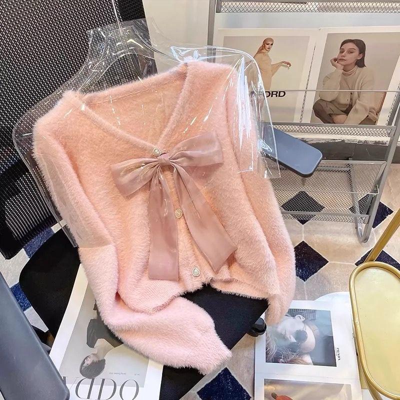 er Premium Rajut Salju Halus 860 Cardigan Pita Cute Atasan Wanita Sweater