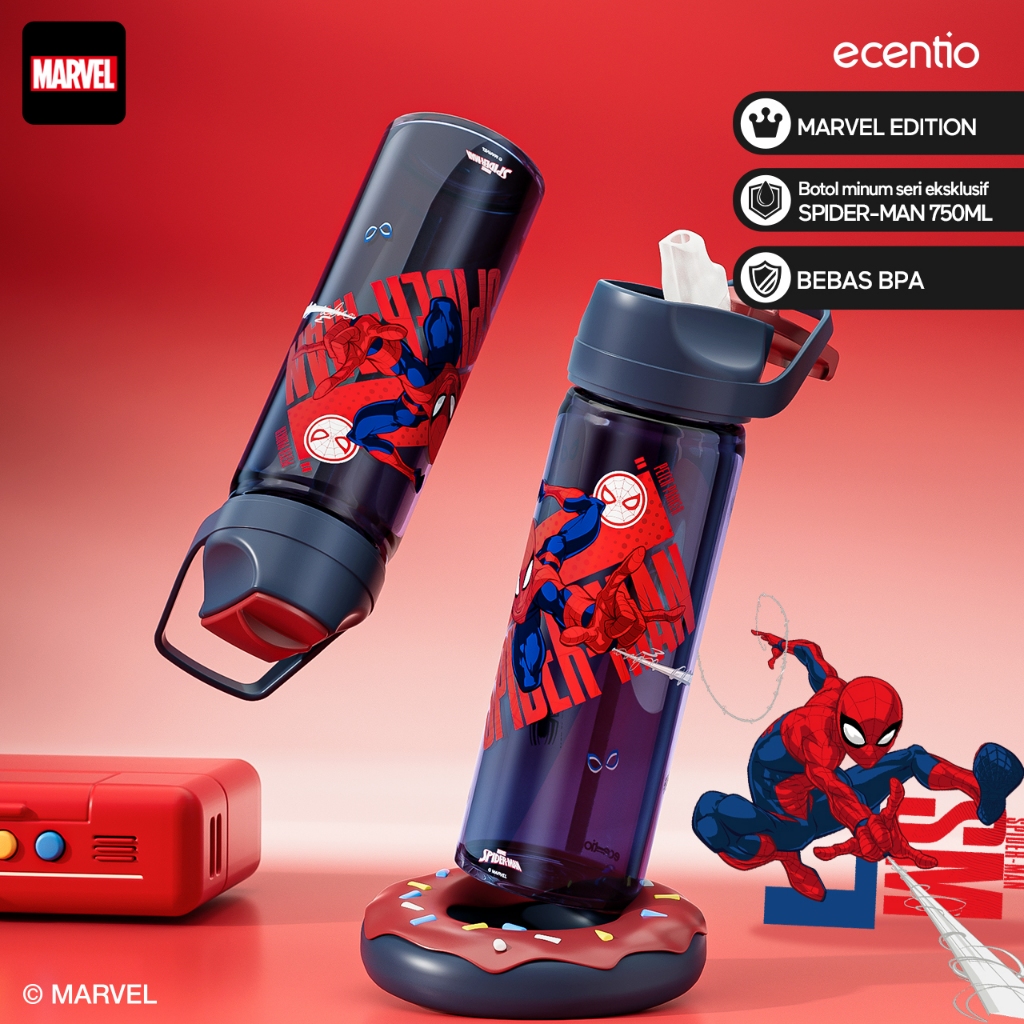 [Back to School] ecentio Marvel Edition Spider-Man tempat bekal set anak sekolah BPA free 3 sekat 800ml kotak bekal anti