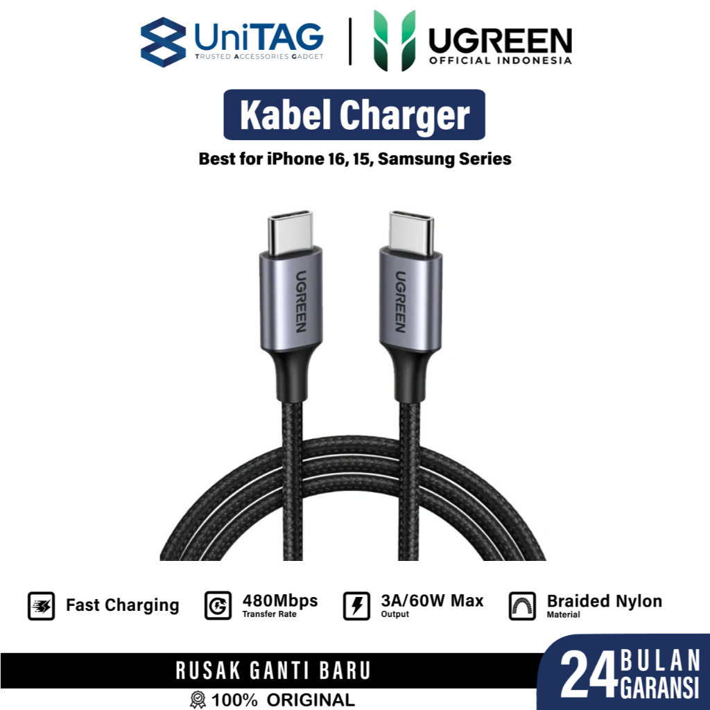 UGREEN Kabel Data Fast Charging for iPhone 16 15 Pro Max Plus Samsung Charger USB Type C to Type C Cable 60W by UniTAG