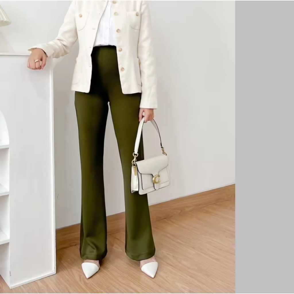 CELANA FIT AND FLARE PANTS CUTBRAY SCUBA PINGGANG HIGHWAIST BAHAN STRETCH Murah Gratis Ongkir