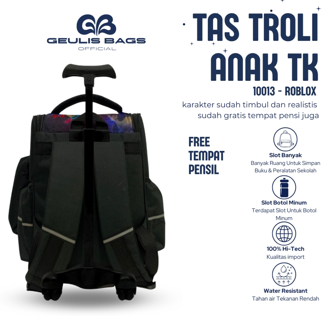 Tas Troli Sekolah Anak Tk Ransel Dorong Paud Karakter Robloxs Terbaru Import