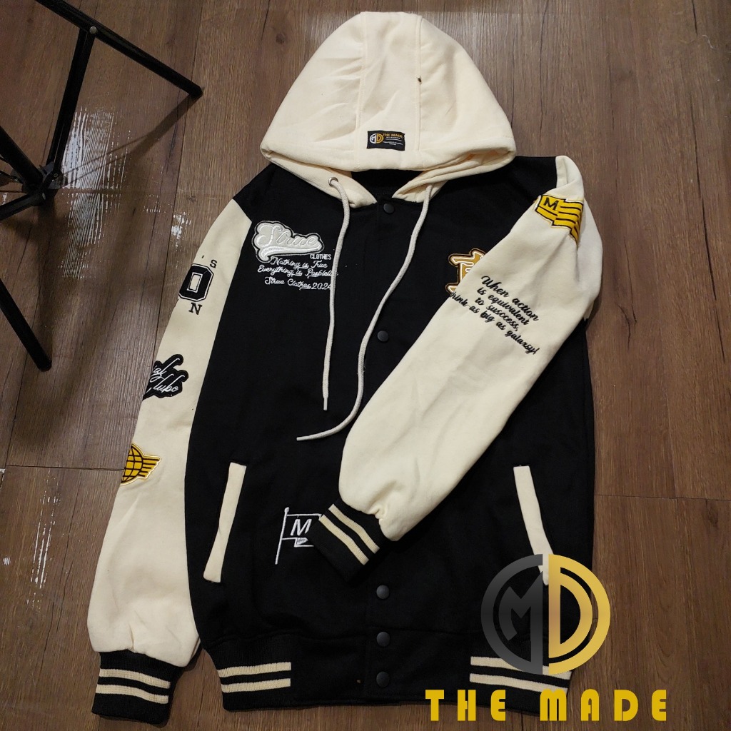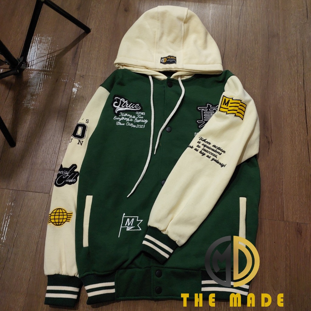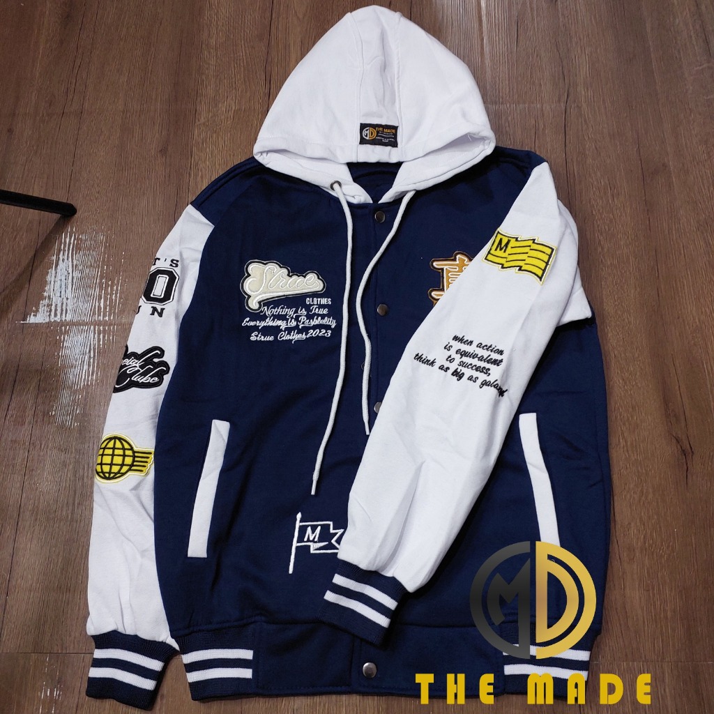 The Made Jaket Varsity Anak-Anak Model Hoodie Gambar Bordiran Usia 2-13 Tahun Jaket Varsity Baseball Bordir Kupluk Keren Bahan Tebal Gramasi 280