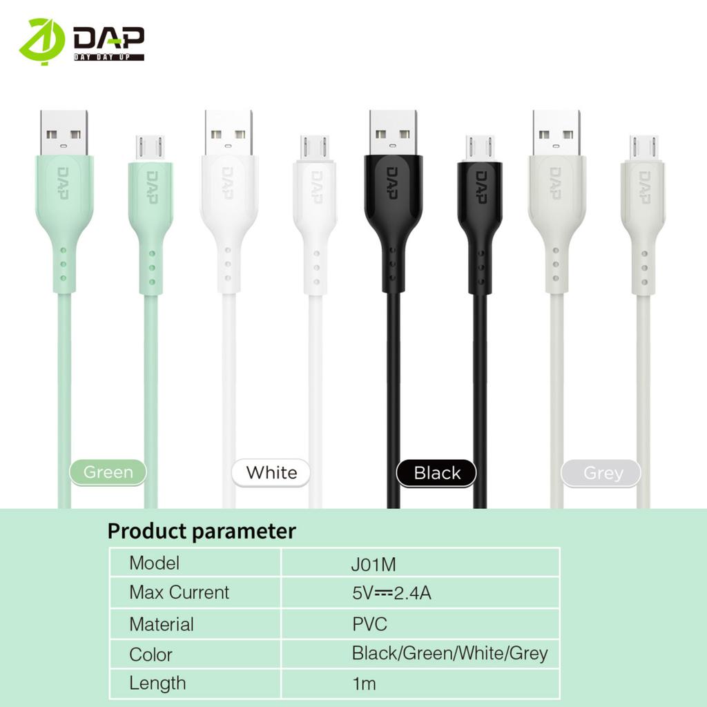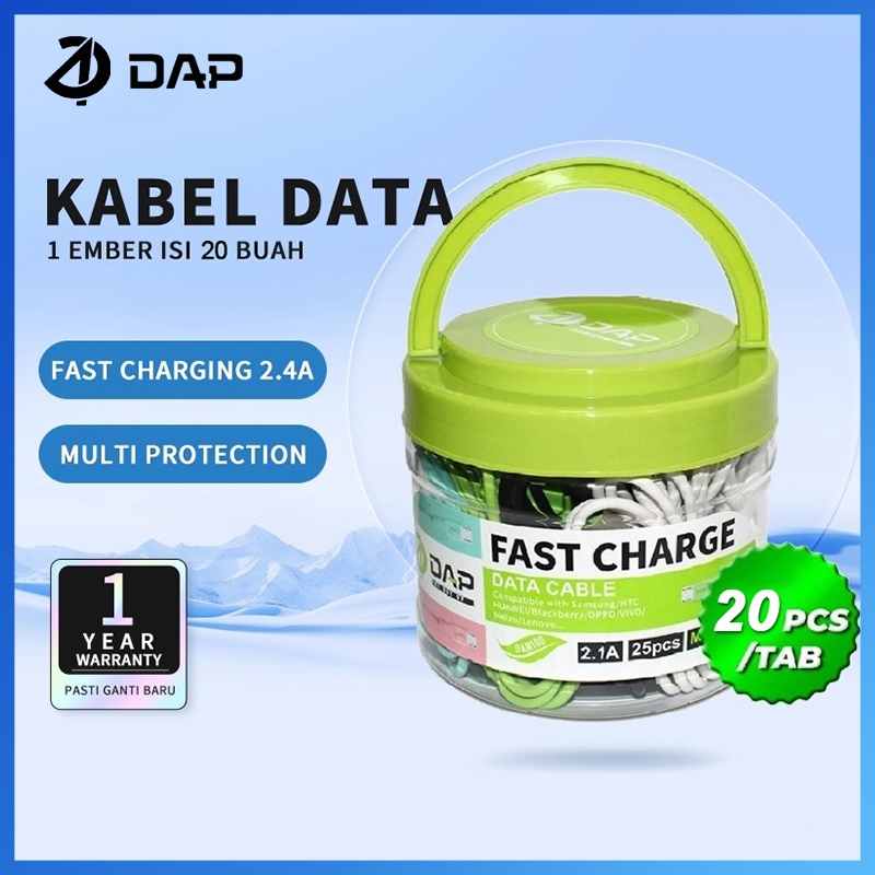 DAP DA Series Toples Kabel Data Micro, Type C & Lightning 2.4A Fast Charging 100cm Garansi Resmi 1 Tahun isi 20 Pcs