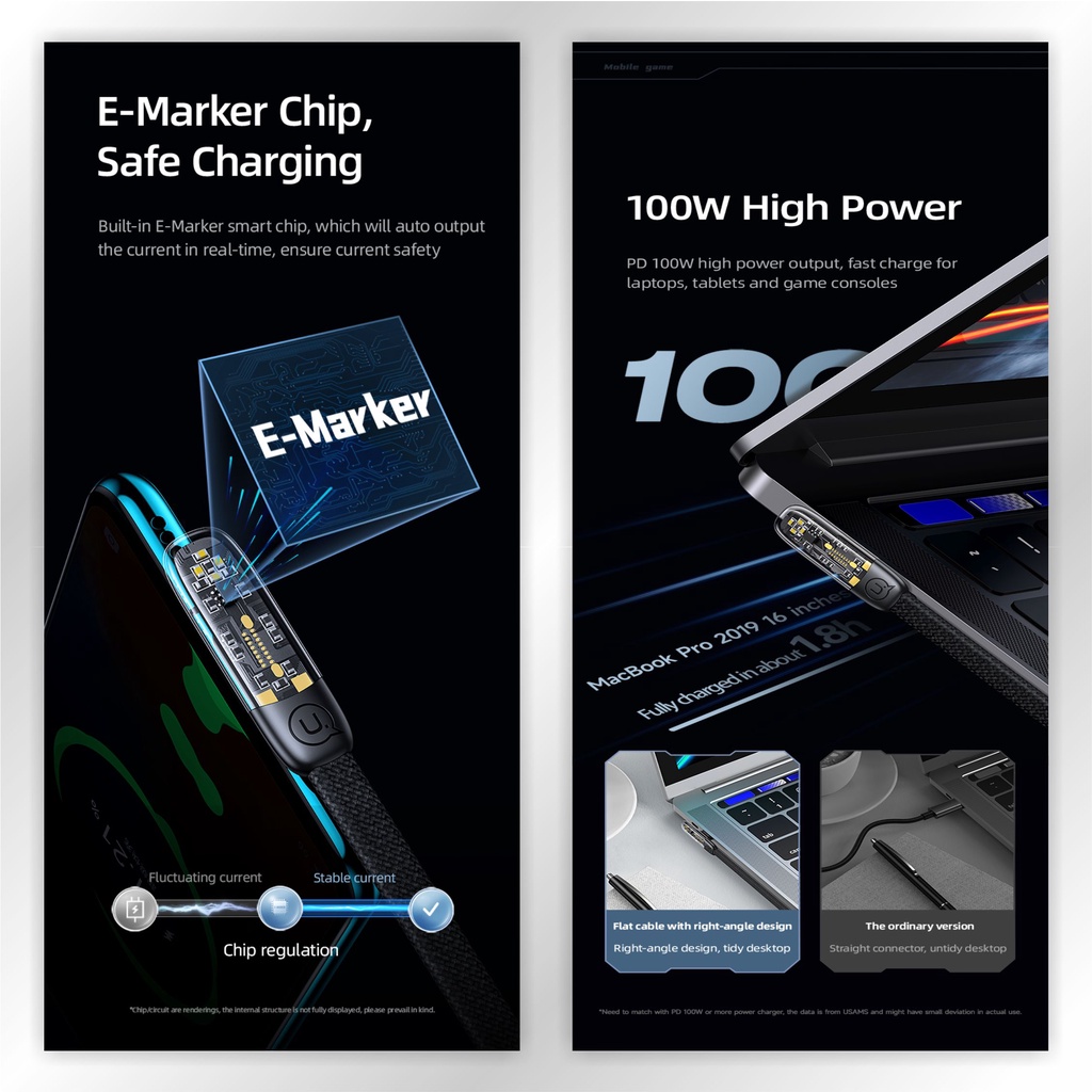 USAMS Iceflake Kabel Data Gaming Type C to Type C PD 100W