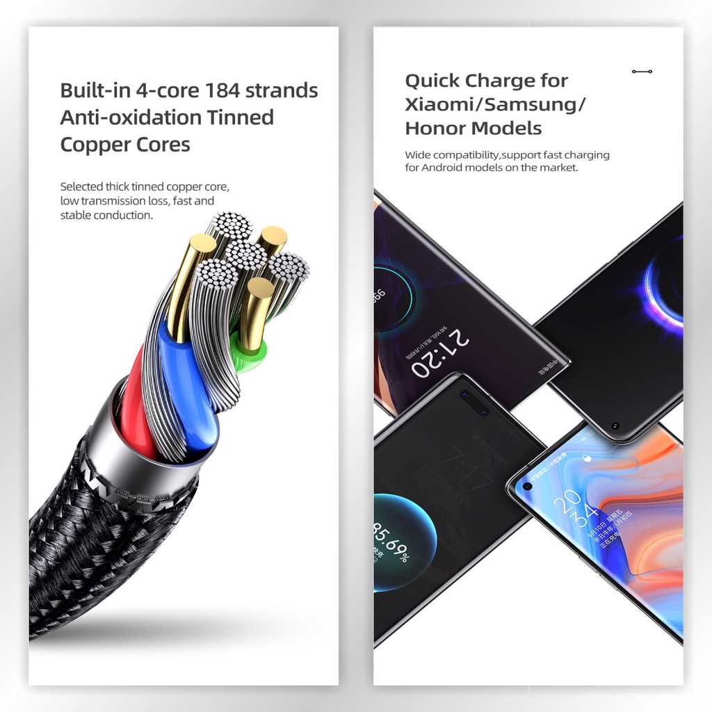 USAMS U76 Kabel Data Fat Charging USB to Type C 6A