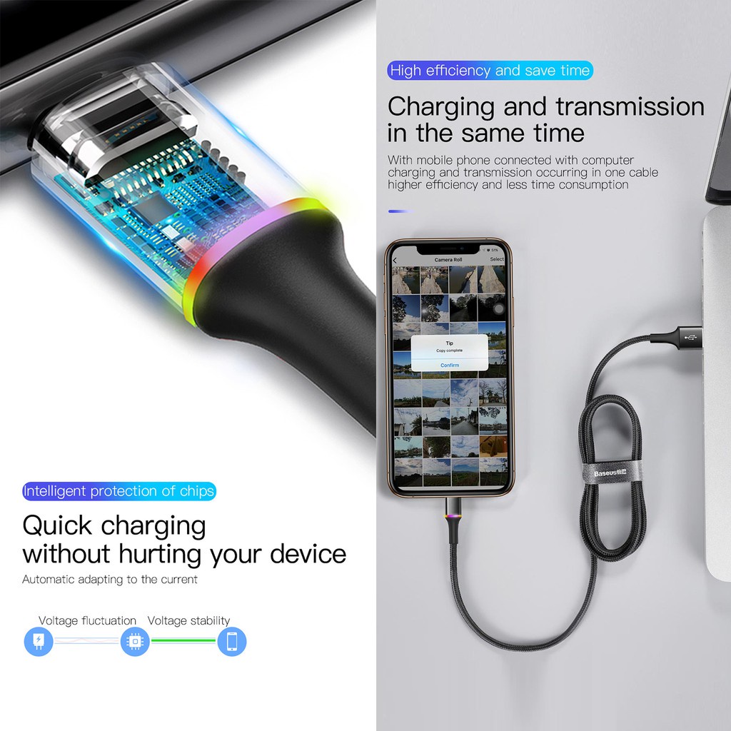 Kabel Data Fast Charging LED Baseus Halo iPhone / Type-C / Micro USB