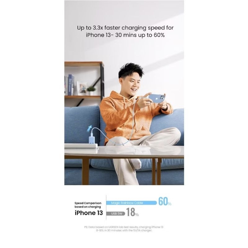 UGREEN Kabel Data USB C to Lightning MFi Silicone Braided for iPhone 8/X/XR/11/12/13 14 Pro Max