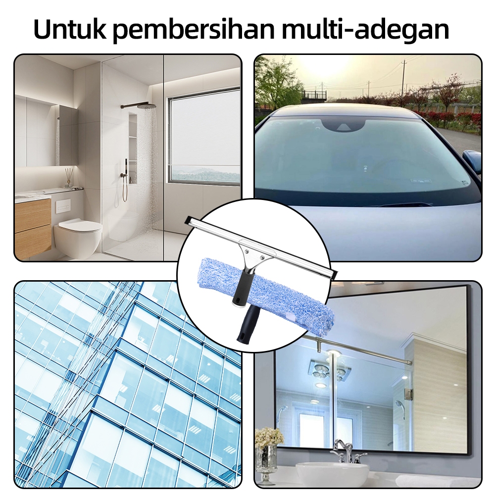 Paket - Window Washer + Window Squeegee Pembersih Kaca Karet & Stainless steel scratching