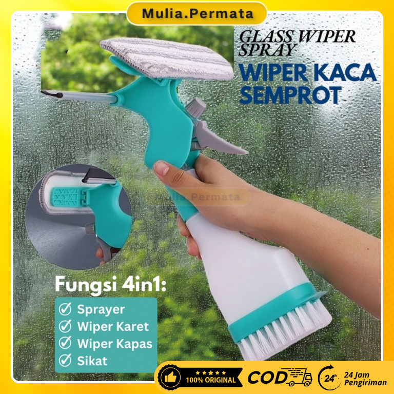 Alat Pembersih Kaca Jendela 4in1 Alat Kebersihan Wiper Spray Window Cleaner Serbaguna