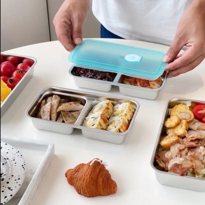 kotak makanan lunch box stainless sus304 tebal 2 sekat tutup anti tumpah seal katup food grade 10 x 20cm Murah Gratis On