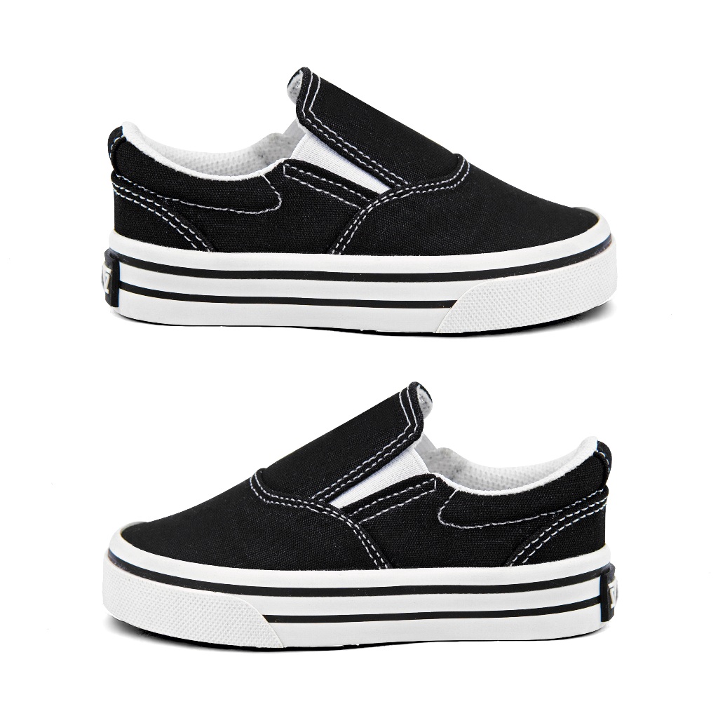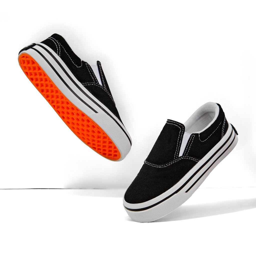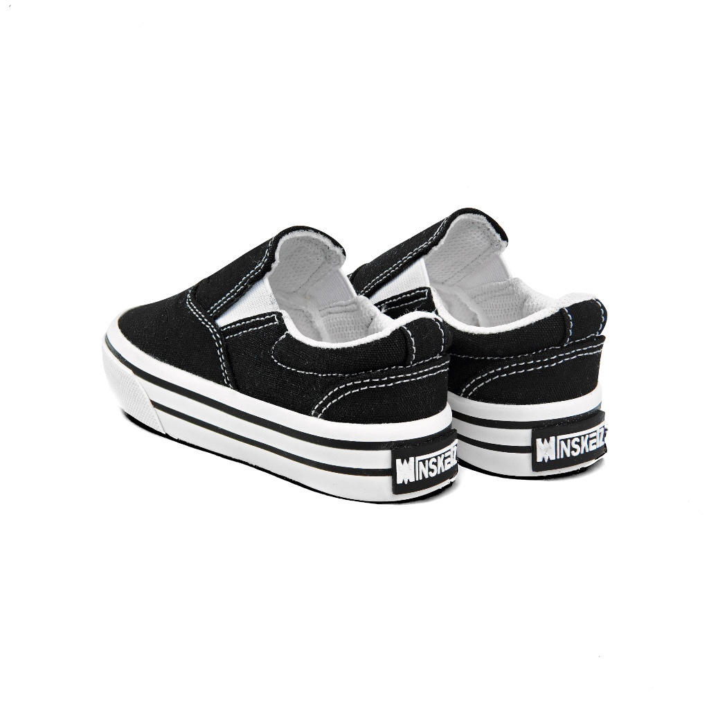 Winsketz - Sepatu Anak Laki Laki Perempuan Sekolah Paud Tk Sd Unisex Hitam Putih Slip On Black