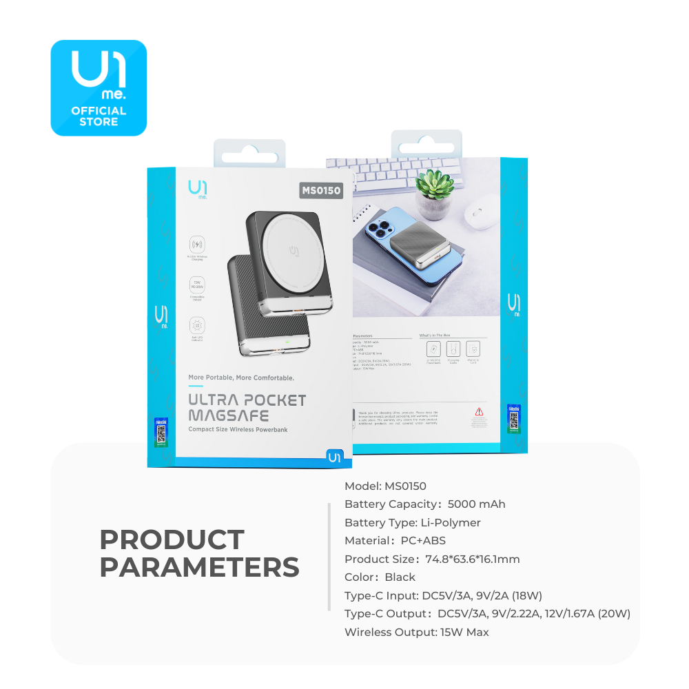 [VINCENT KOSASIH APPROVED] U1me. Powerbank Pocket Mini Magsafe 5000 mAh PD 20W Fast Charging Type C Powerbank Wireless U