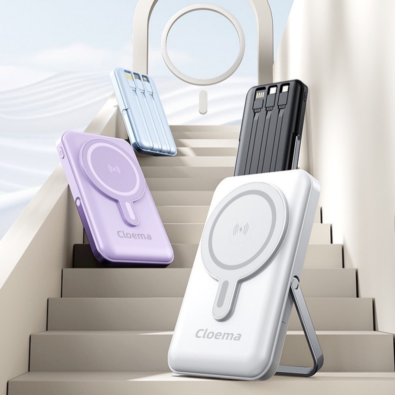 LOCAL Cloema 10000mAh Fast Charging 22.5W Magnetic Phone Battery With Stand 3 Cables For TypeC iP Lightning Micro USB Di