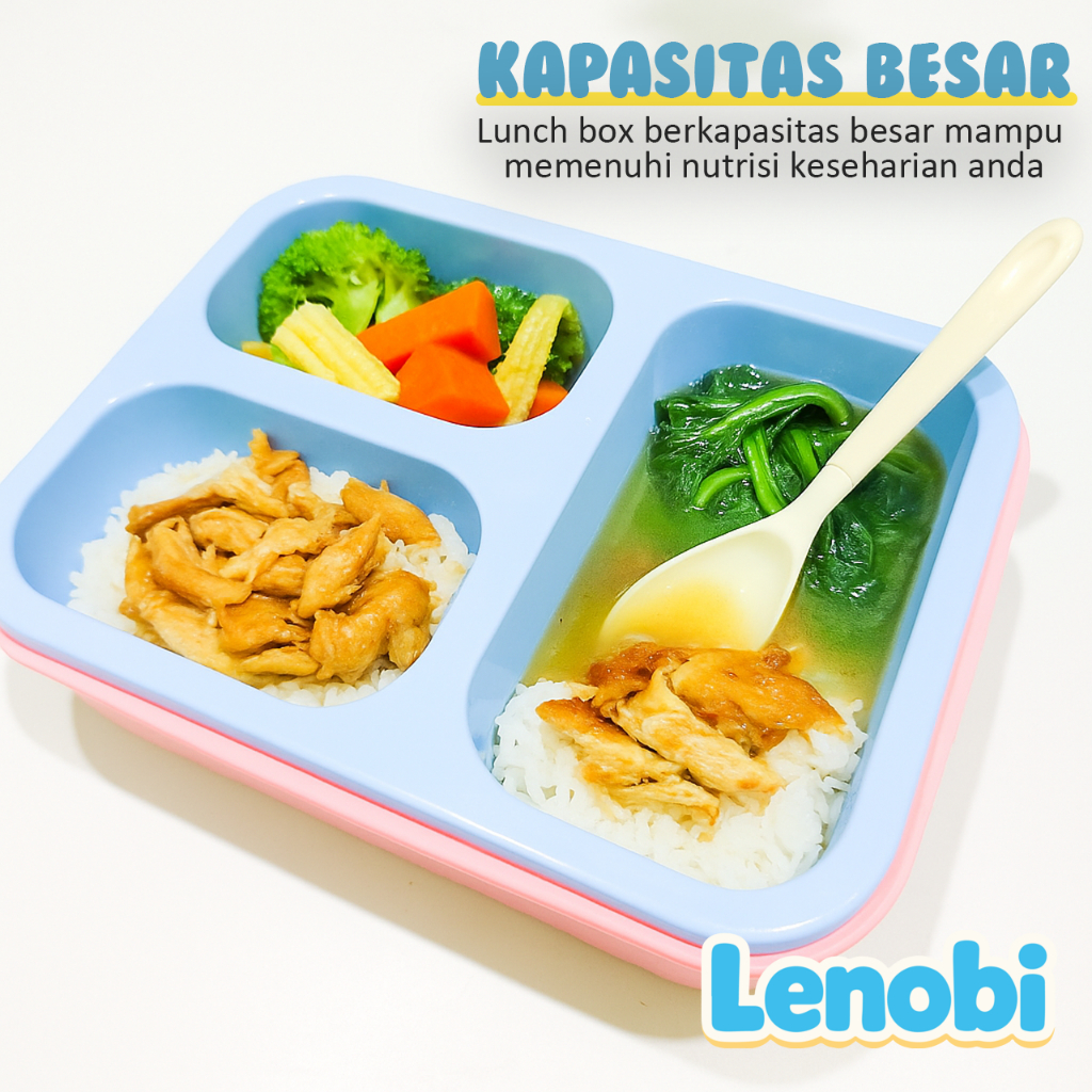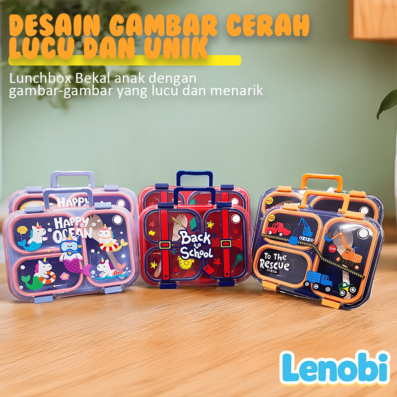 LENOBI - Kotak Bekal Anak Back to School Lucu 3 Sekat dan 4 Sekt BPA Free Anti Bocor LUNCH BOX BENTO Murah Gratis Ongkir
