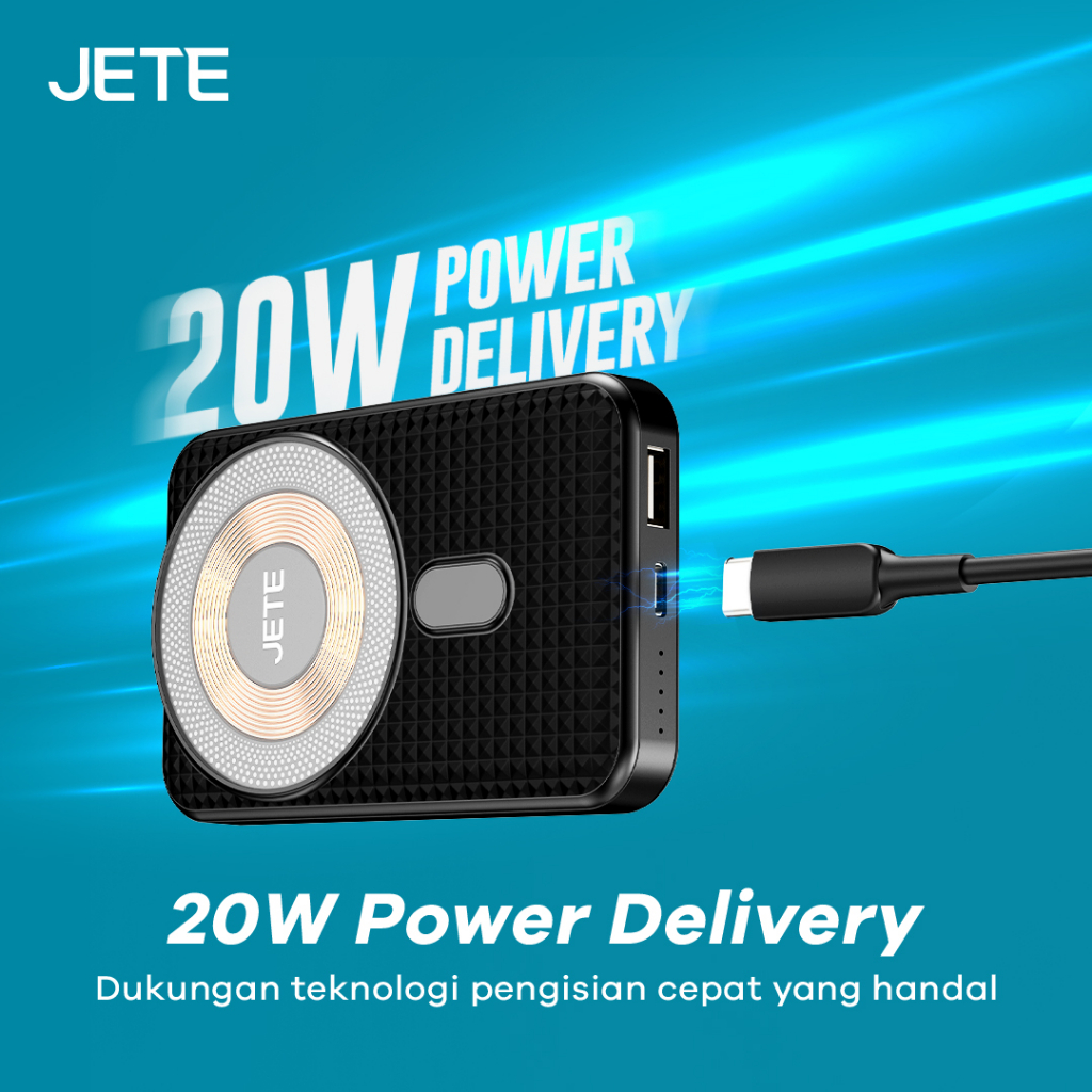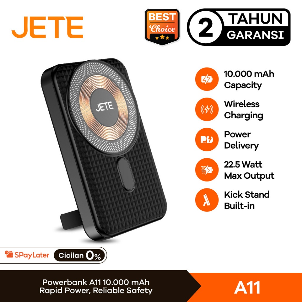 JETE Powerbank A11 Wireless Magnetic 10000mAh 22.5W Fast Charging Power Bank Dual Port USB Type C With Stand Phone Holde