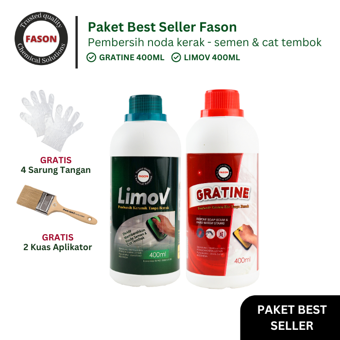 Paket Best Seller Fason Pembersih Granit Noda Semen dan Cat Tembok Gratine 400ml dan Limov 400ml