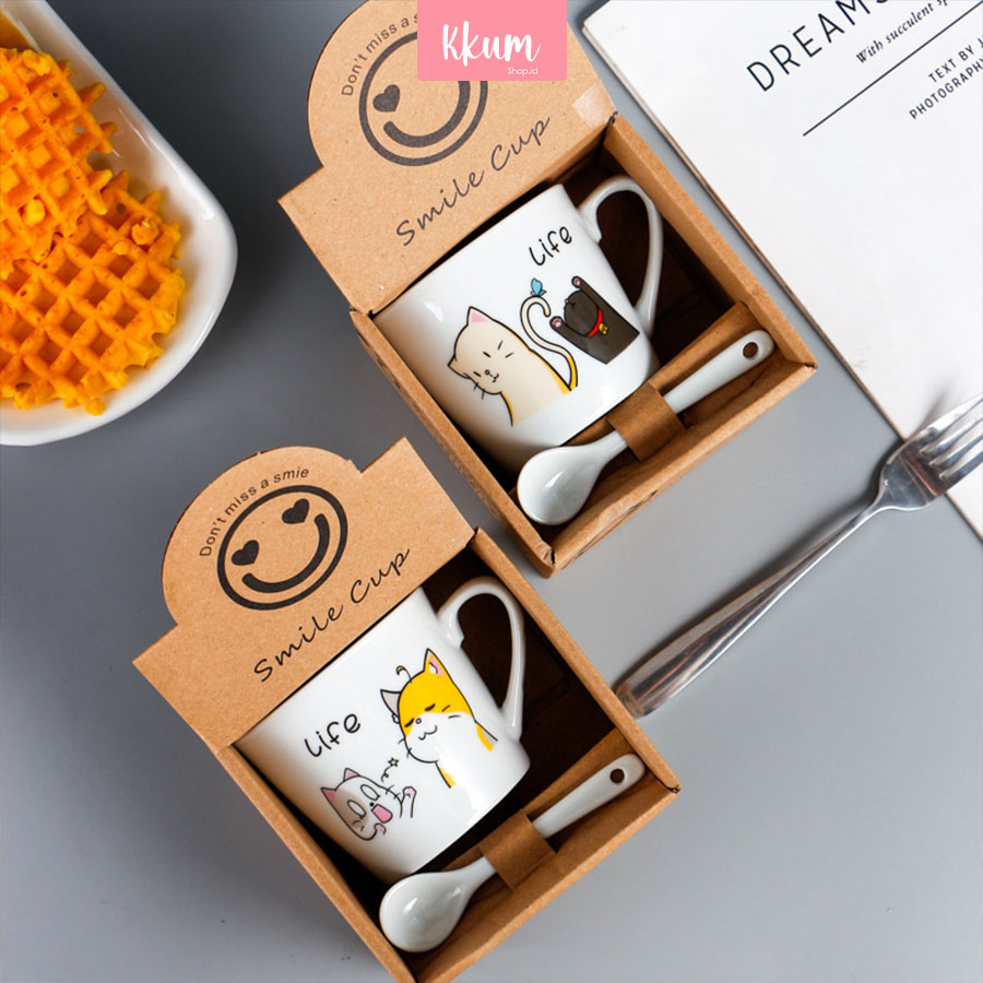 Gelas Kopi Keramik Set sendok / Handel Mug set / Mug Souvenir Hampers Premium Murah Gratis Ongkir