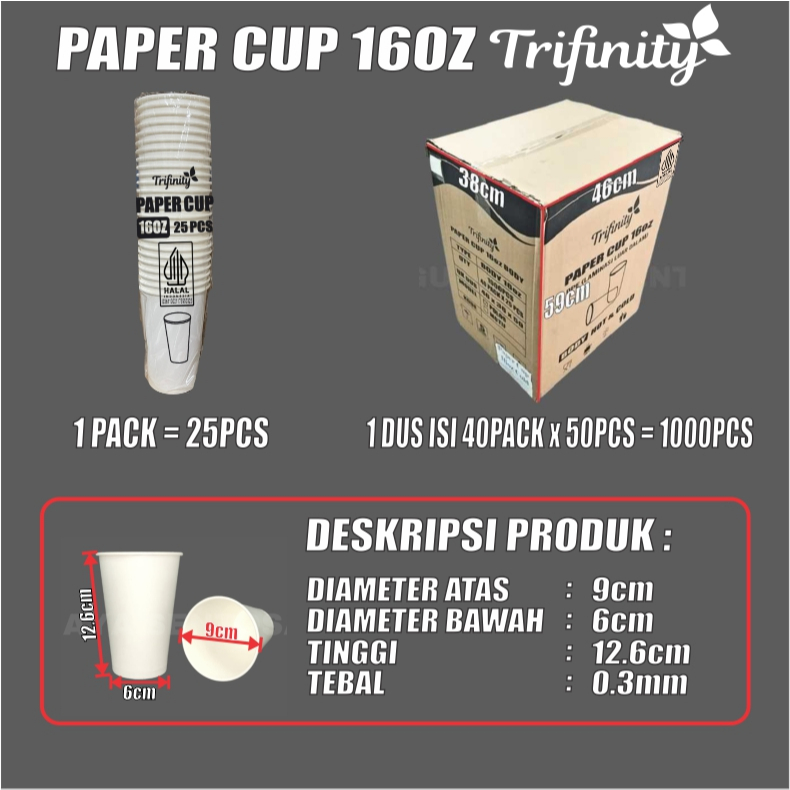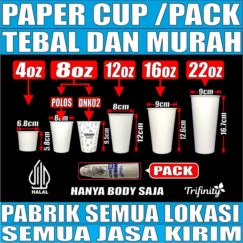 Paper Cup Tebal 12gr 4oz 120ml 8oz 240ml 12oz 360ml 16oz 480ml 22oz Pack Gelas Kertas Trifinity JSP Murah Gratis Ongkir