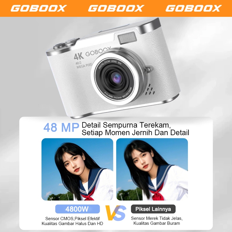 GOBOOX Layar Balik Digicam 48MP 8X Zoom Kamera Digital Mini 4K Vlog With Lampu Kilat Anti Goyang Filter Puzzle Games LCD