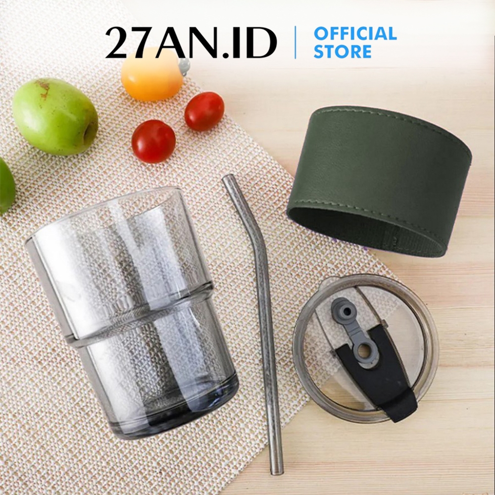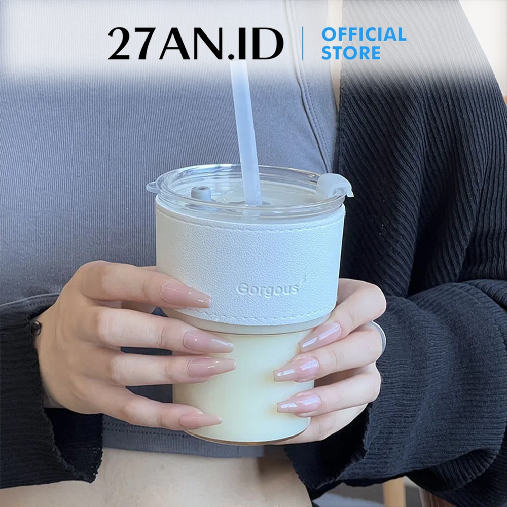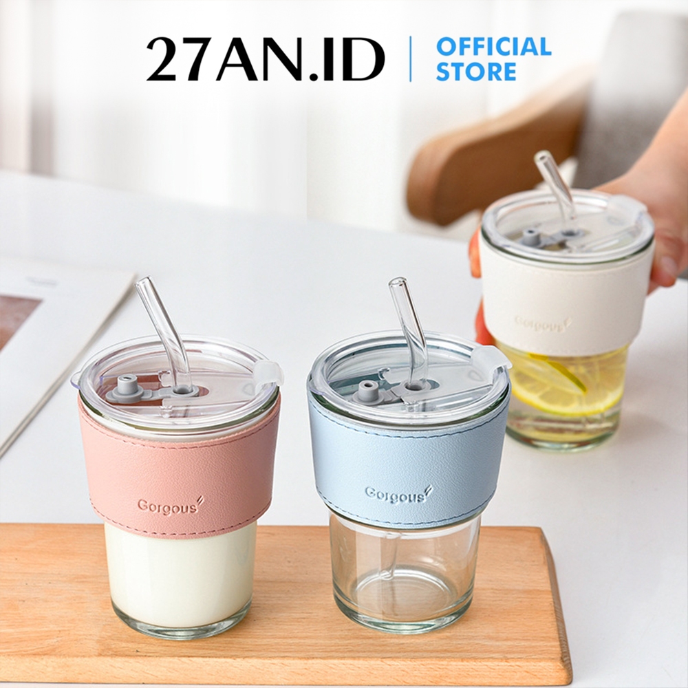 Botol Minum Kaca Aesthetic H663 Tumblr Gelas Kaca Sedotan dan Tutup Gelas Vintage Murah Gratis Ongkir
