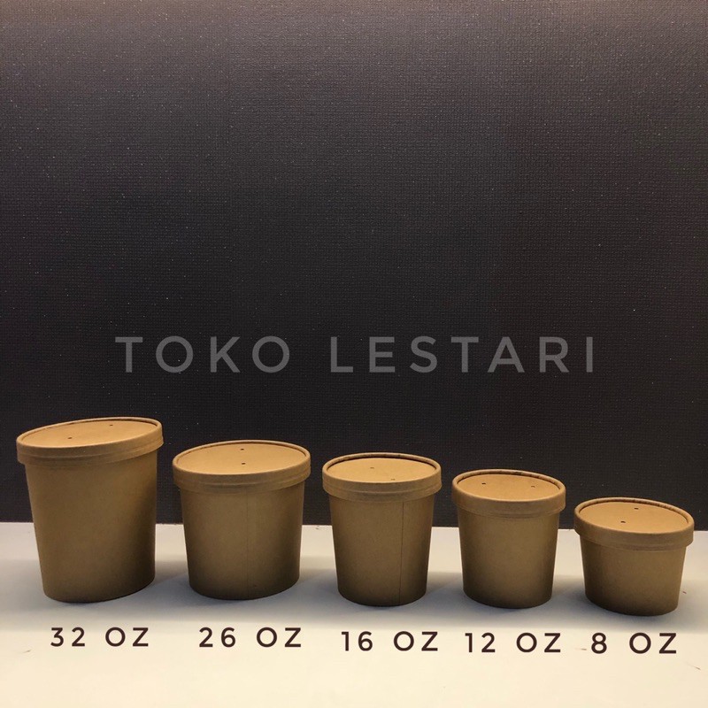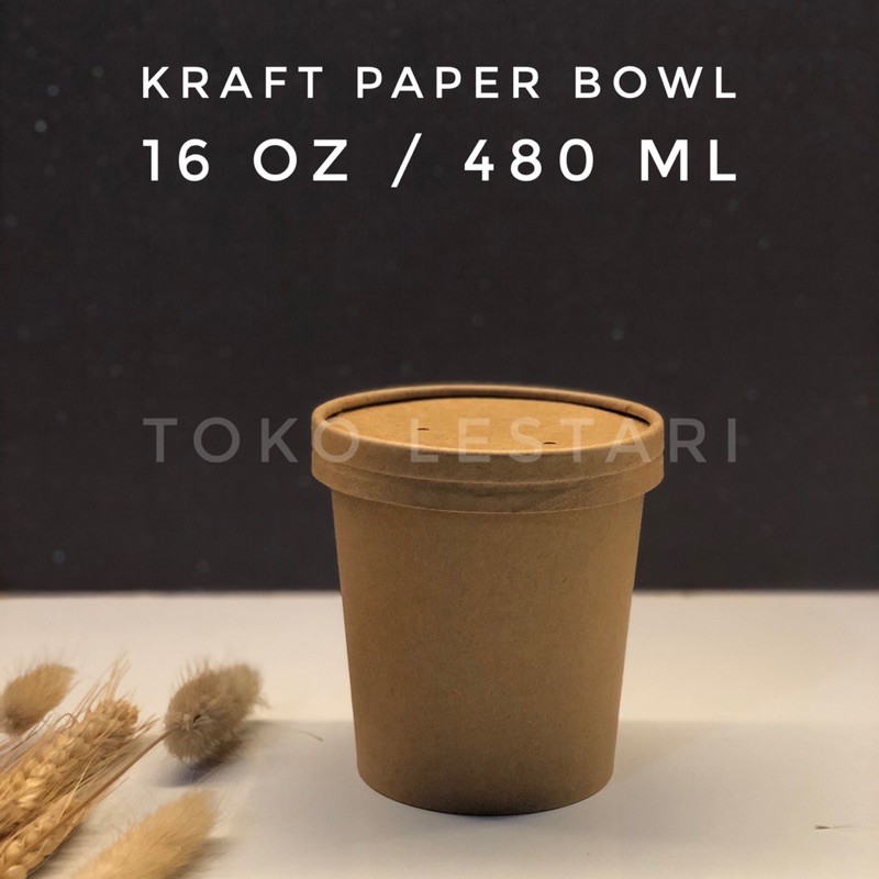 Kraft Paper Bowl 16 Oz + Lid Food Grade Untuk Soup cup / Ice Cream cup dll Murah Gratis Ongkir