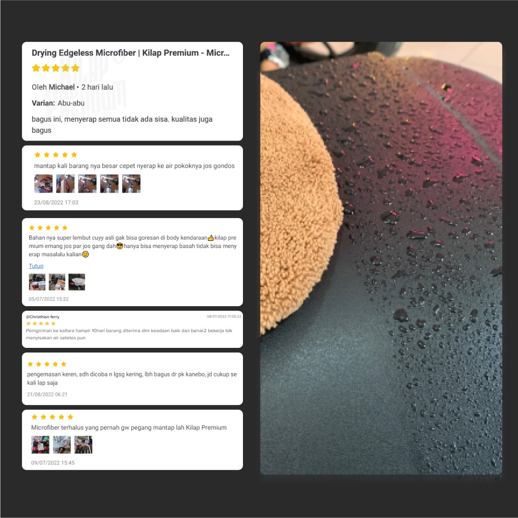 Drying Edgeless Microfiber | Kilap Premium - Microfiber Pengering Kendaraan Motor Mobil, Handuk Lap Towel Mikrofiber Pen