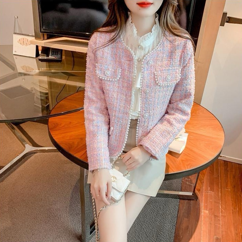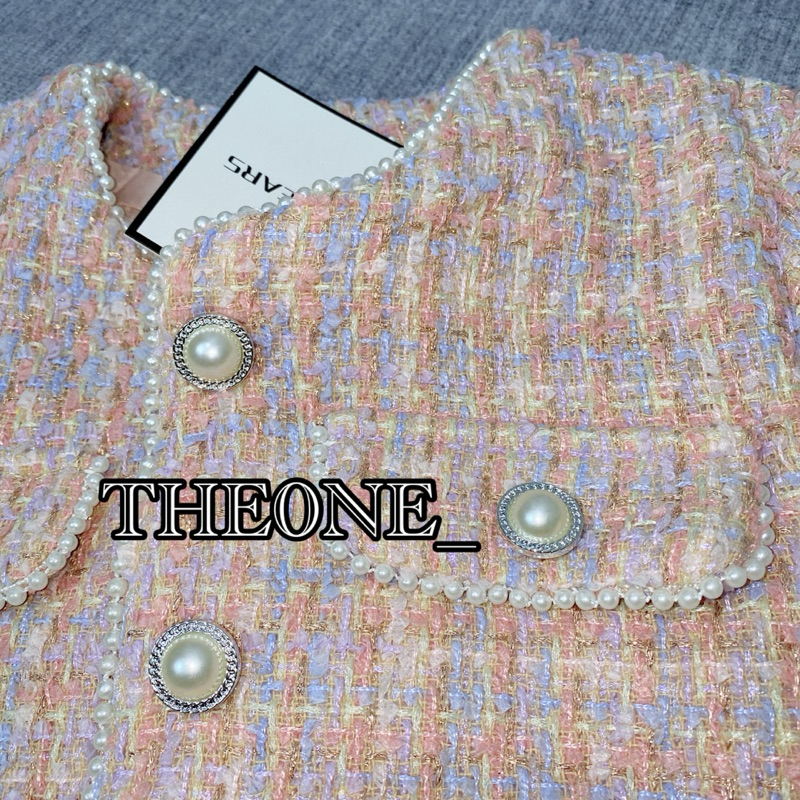 The0ne_ Feminine Sweety Blazer Tweed Soft Pink Rainbow M-2XL