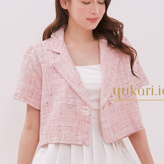 SUNNY Blazer Korean Tweed - Rompi Casual & Kantoran, 2 Model Lengan, er Crop Wanita Korea