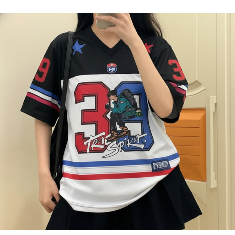 Baju Jersey Unisex COMBI HITAM 68 Streetwear Oversize Number Premium Murah Gratis Ongkir