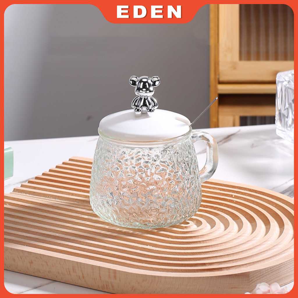 Eden - Gelas Kaca Aesthetic Korea 350ml | Coffee Cup Elegan + Sendok | Souvenir Cantik Murah Gratis Ongkir