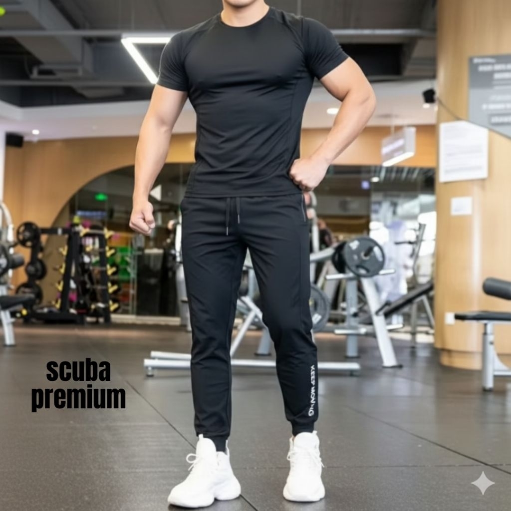 Celana Training Olahraga Dewasa Bahan Scuba import Saku Waterprof Celana Olahraga Pria Fitnes Gym Runing Senam Yoga Wani
