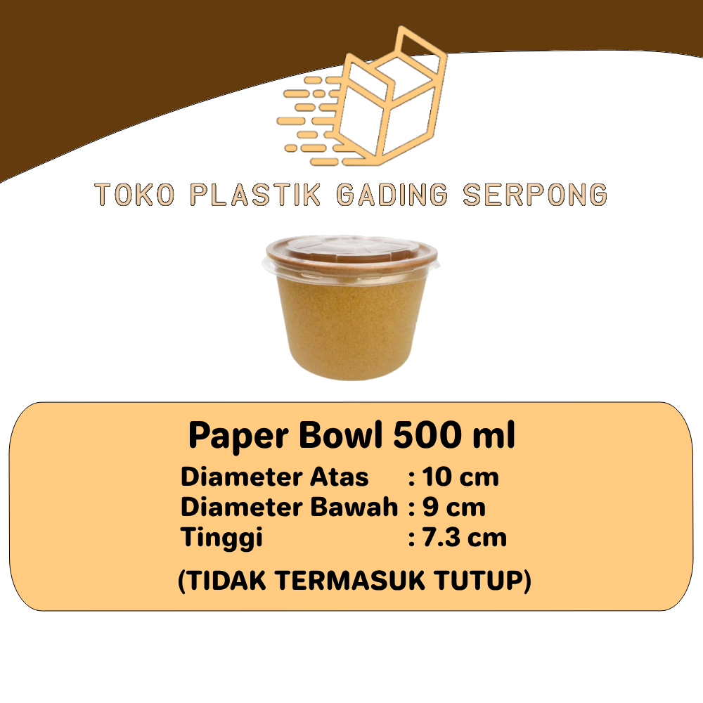 Paper Bowl Semua Ukuran + Tutup / Mangkuk Kertas Ukuran 360ml, 500ml, 650ml & 800ml Coklat dan Putih / Mangkok Kertas Ta