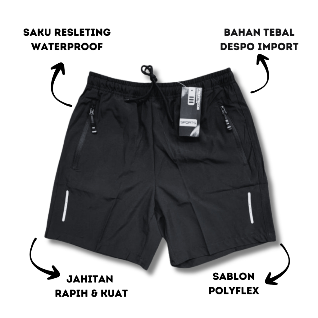 Celana Pendek Parasut Saku Resleting Waterproof Pria Wanita Olahraga Running Gym Sport Size Jumbo Murah Gratis Ongkir