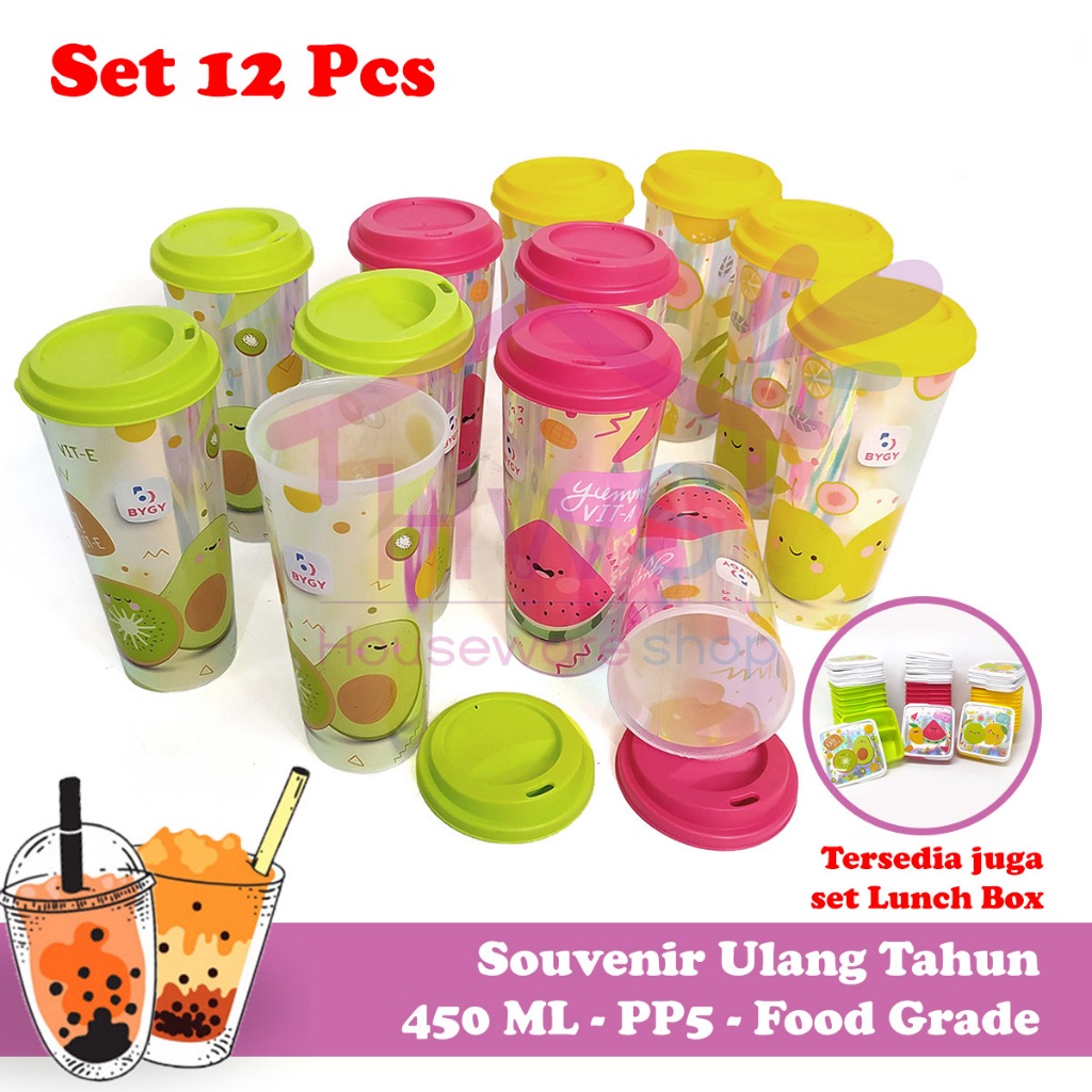[LUSIN] Gelas Tumbler Buah Fruitamin 450ml - Souvenir Ulang Tahun Isi 12 Pcs Murah Gratis Ongkir
