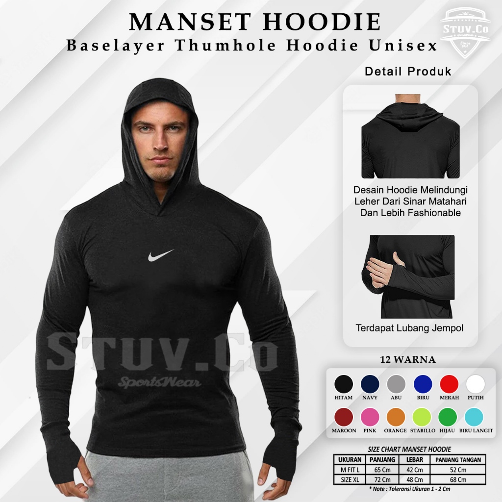 MANSET BASELAYER PRIA HOODIE THUMBHOLE OLAHRAGA LENGAN PANJANG GYM FITNESS FUTSAL SEPAKBOLA Murah Gratis Ongkir