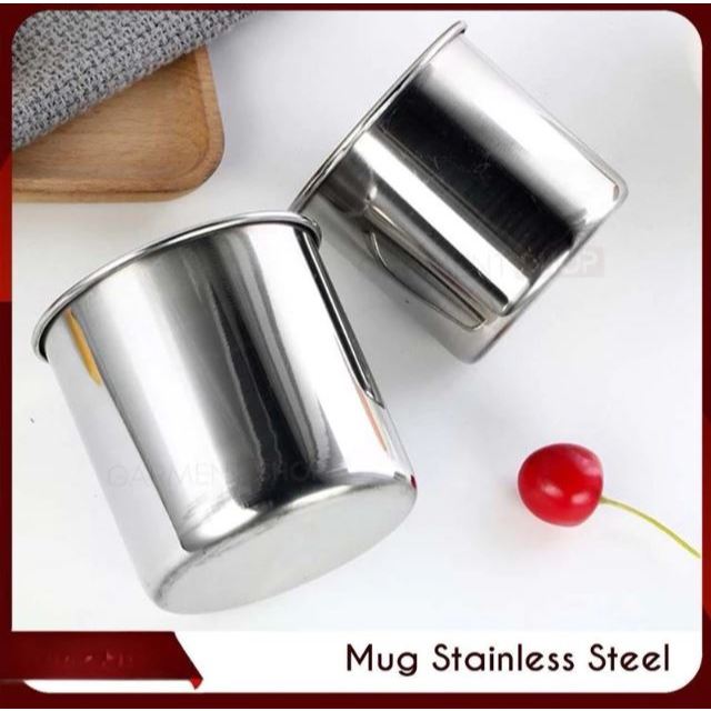 ( BISA ) GELAS MUG 7CM STAINLESS TANPA TUTUP ANTI BOCOR / MUG CANGKIR KOPI TEH MINI TEBAL Murah Gratis Ongkir