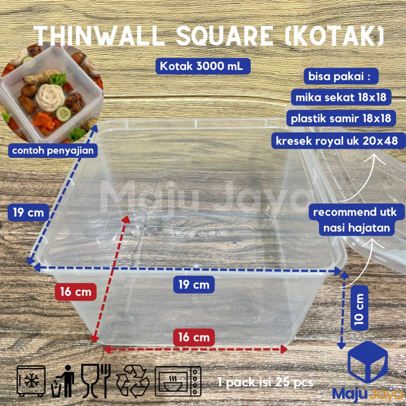 Maju jaya - [1 PACK ISI 25 PCS] Thinwall kotak (1000 1500 2000 3000 ml) / Thinwall Square / kotak hajatan berkatan / kot