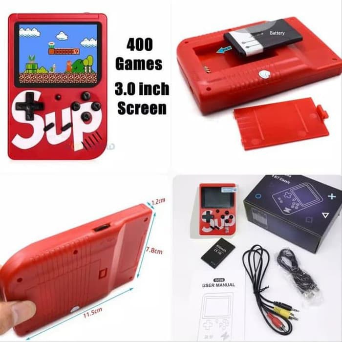 2in1 Game Boy Retro 400 in 1 – Konsol Mini 8 Bit SUP Edisi Terbatas RED Series, Portable Gaming Nostalgia