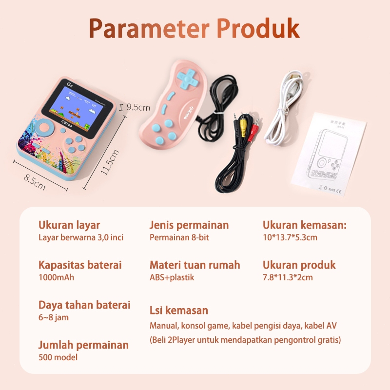 Akona Max Game Boy Bot Retro 500 in 1 Konsol Game Console 2 Pemain Gembot Game Tetris Game (Koneksi TV)