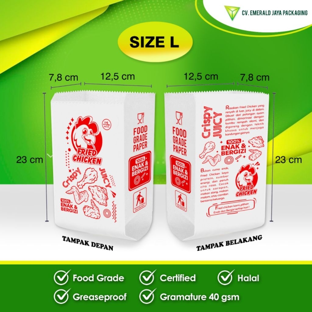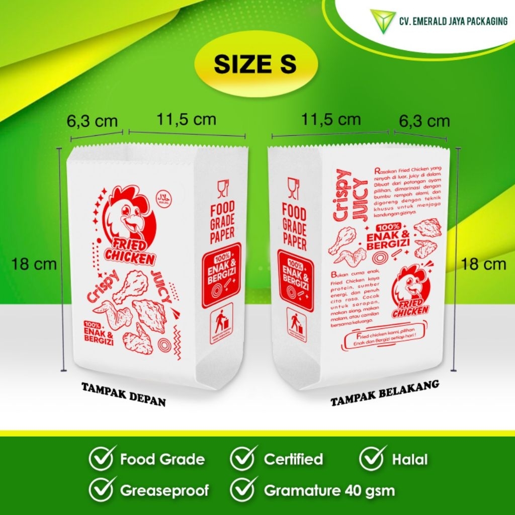 Kemasan Kantong Kertas Fried Chicken S M L - Food Grade & Anti Minyak Murah Gratis Ongkir