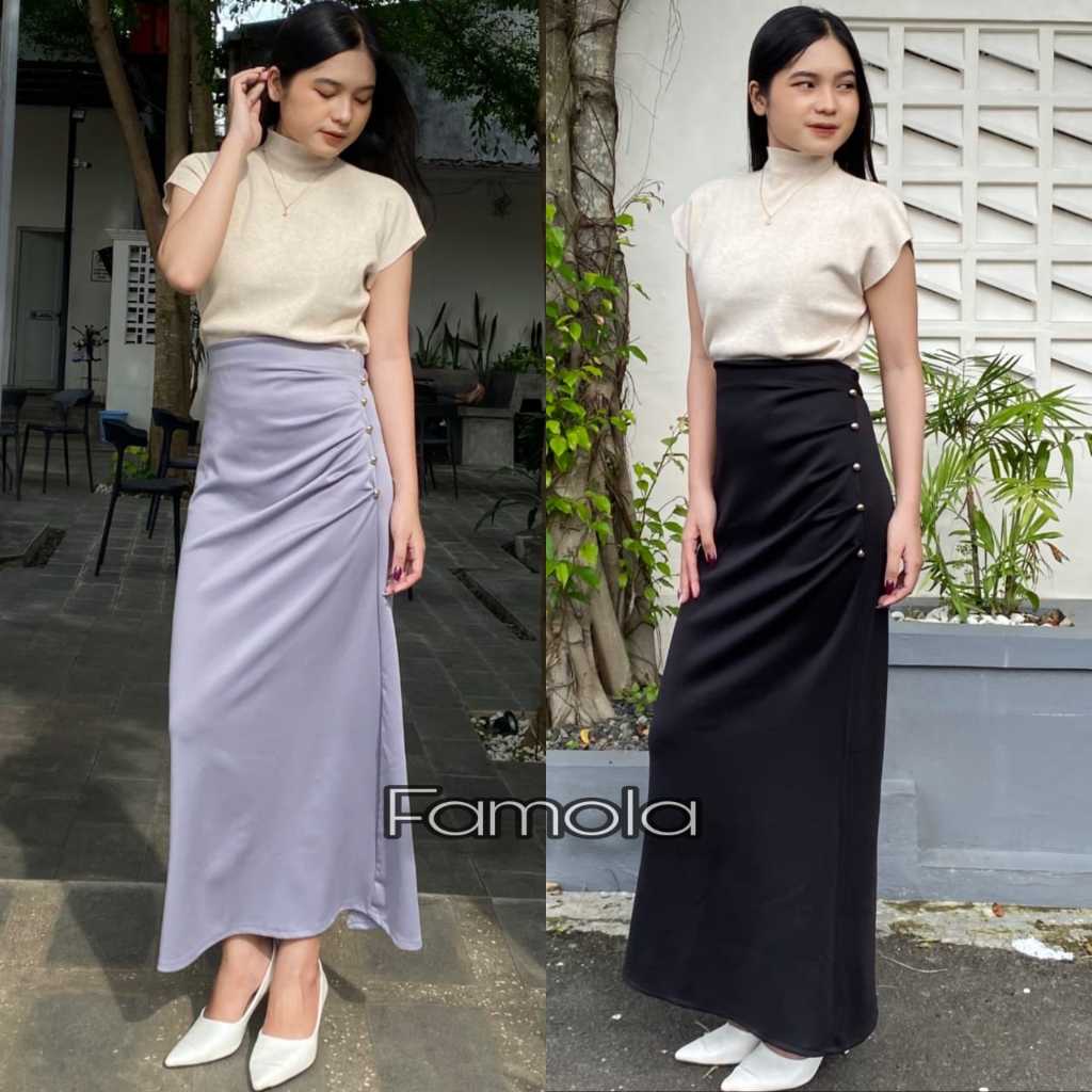 FAMOLA - Jillow Skirt Rok Span Wanita Anti Kusut - Korean Maxi Skirt Rok Flare Scuba Premium - Maxi Skirt Rok Panjang Wanita