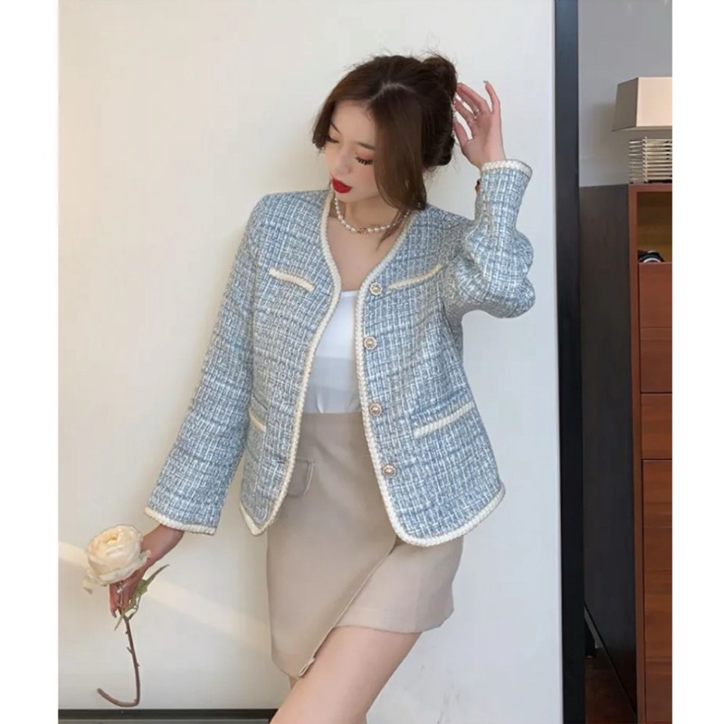 THEONE BLAZER JUMBO L-4XL | Korean Long Blazer Tweed Bigsize With Pearl Buttons