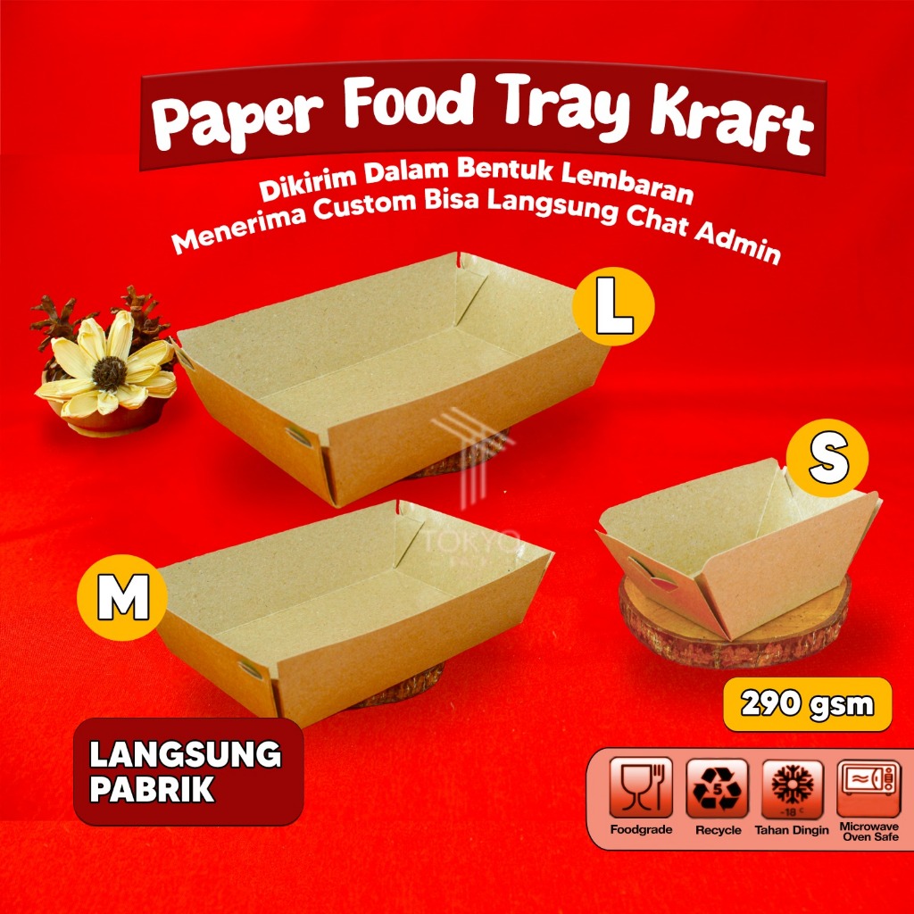 FOOD TRAY / PAPER TRAY / PIRING KERTAS LAMINASI FOODGRADE SIZE S , M , L Murah Gratis Ongkir