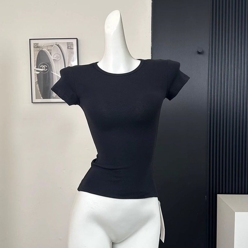Kaos Leher Bulat Berusuk Retro, Kaos Ketat Stretch Fashion Korea, Atasan Wanita Terbaru Murah Gratis Ongkir