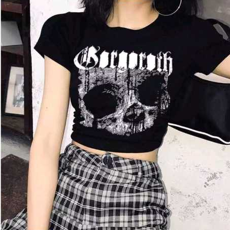 Crop Top Wanita Borgoth Rib Print Fit To L Murah Gratis Ongkir