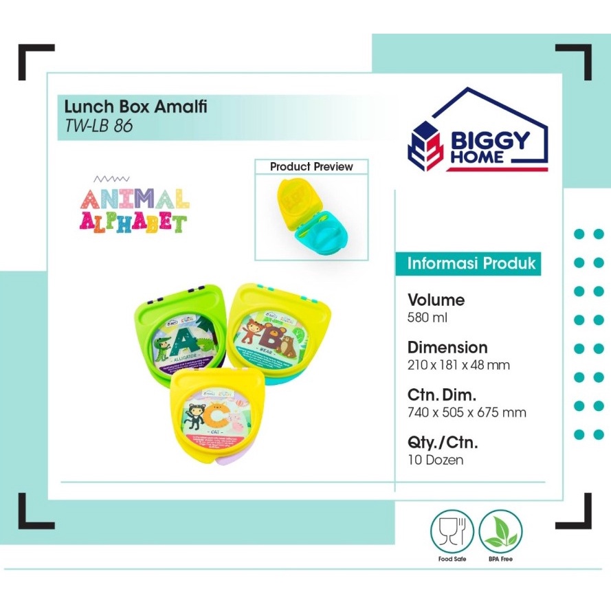 Lunch Box Set Amalfi Wadah Kotak Makanan Anak Tempat Bekal + Bonus Sendok & Garpu Box Serbaguna Kado Souvenir Ultah Mura